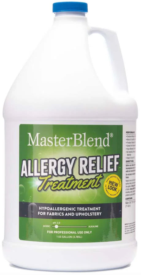 The treatment uses MasterBlend Anti-Allergen, a water-based product designed to help reduce common household allergens such as dust mites and pet dander.