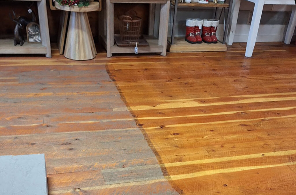 A crystal odor counteractant was applied to affected floor areas to help suppress lingering smoke odors at the source.